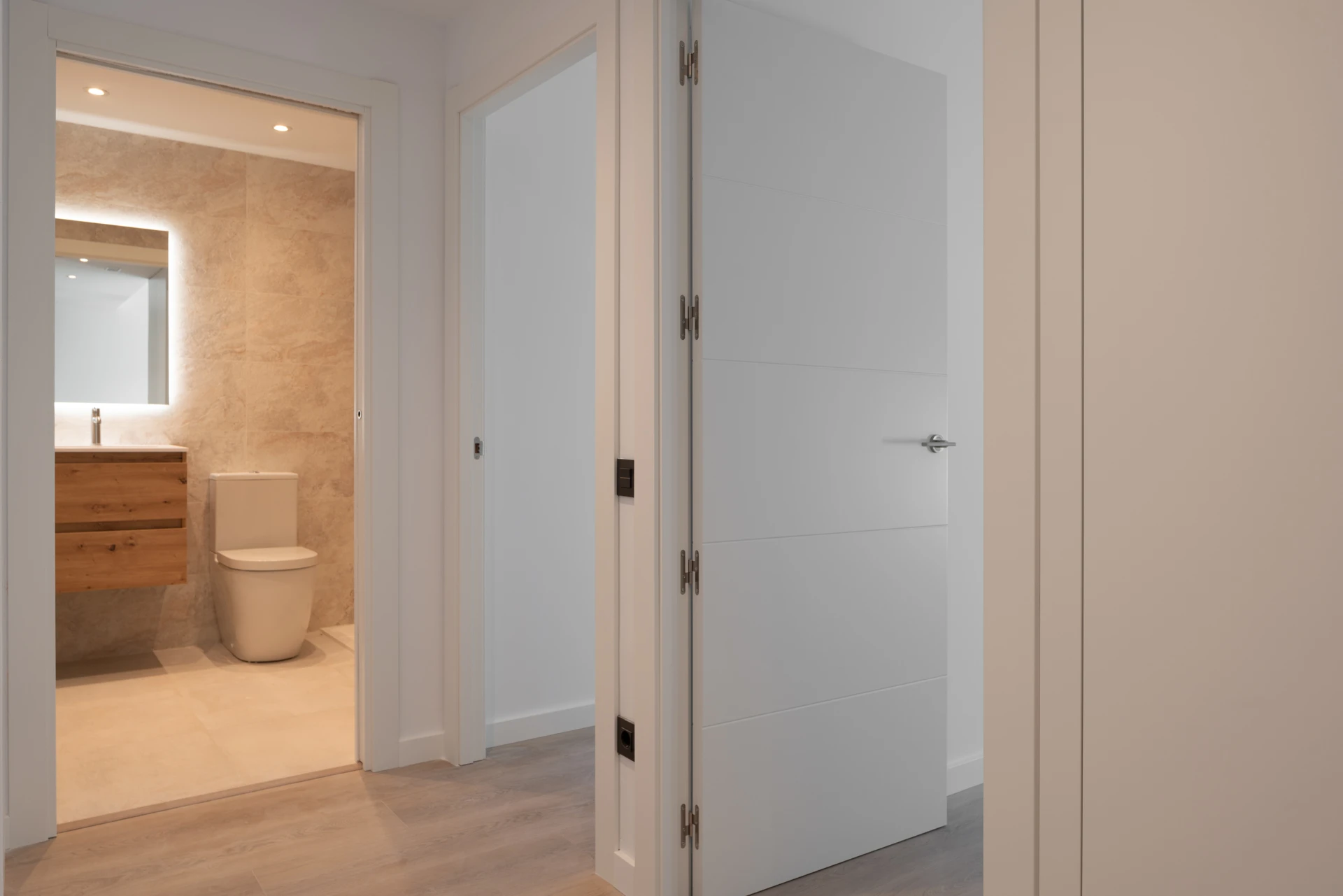 El reportaje de fotografía inmobiliaria, realizado por Marc Quintana, busca transmitir la elegancia y precisión constructiva de este conjunto residencial, donde la arquitectura y el interiorismo se combinan para crear espacios funcionales, luminosos y sofisticados.